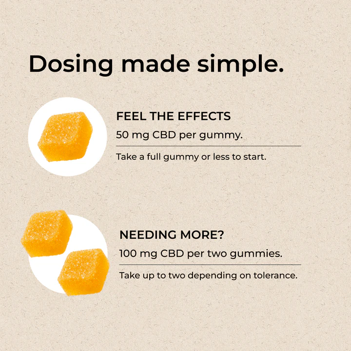 Actives (per gummy): 50 mg CBD, 25 mg CBG.